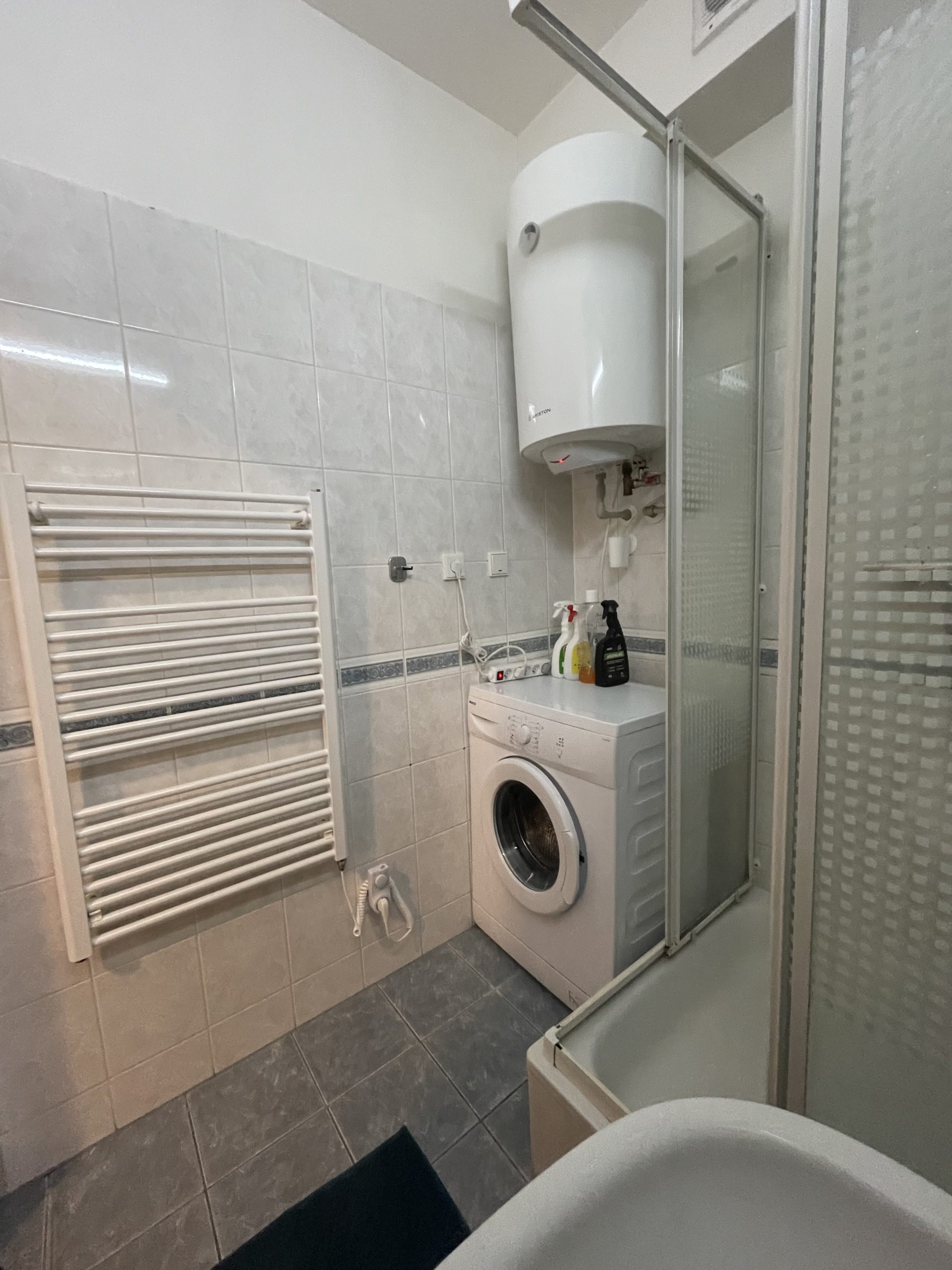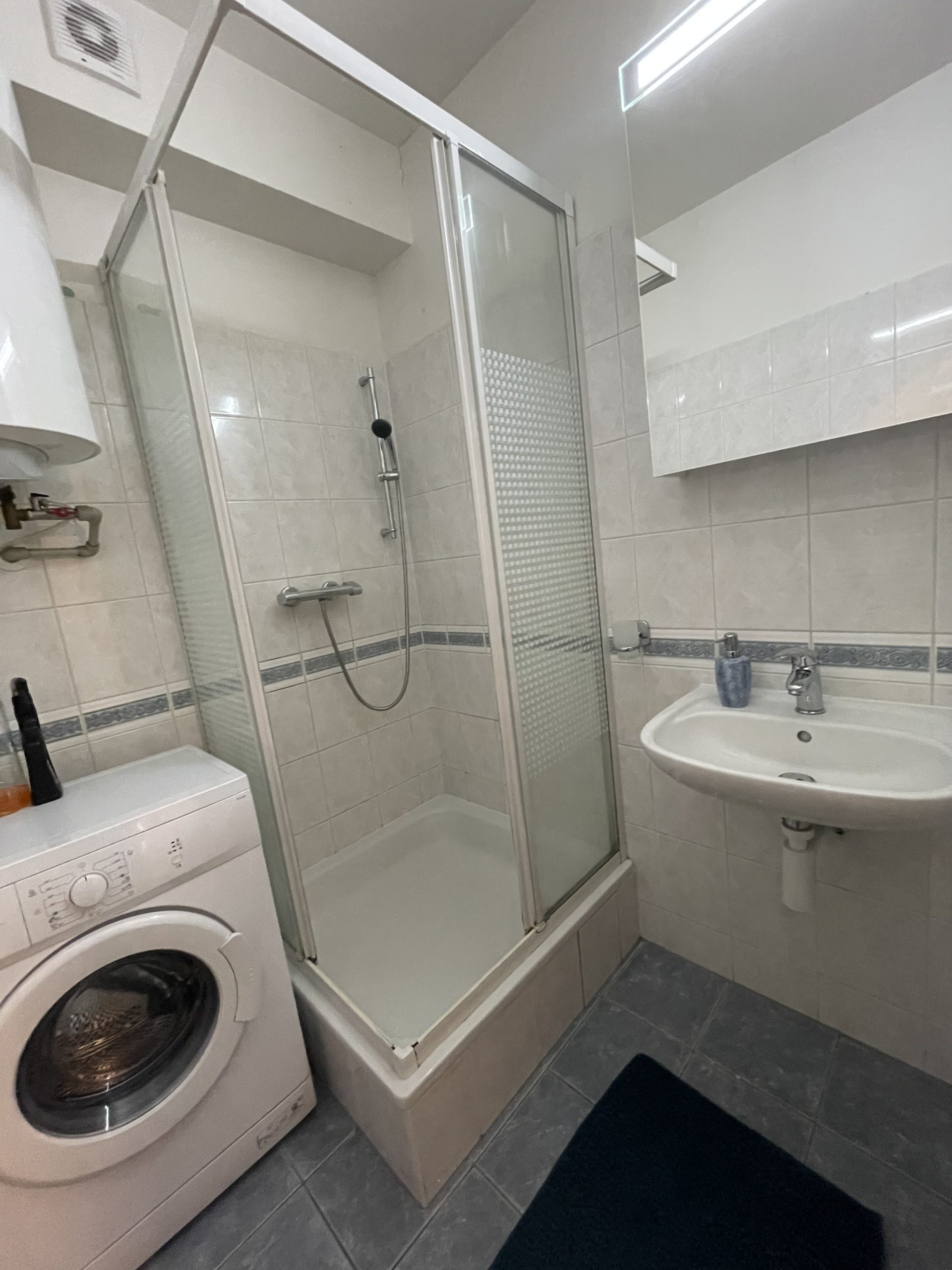 The apartment has 2 bedrooms, a kitchen with a dishwasher and stove, and a bathroom with a shower, hairdryer, and washing machine. Television is also provided.